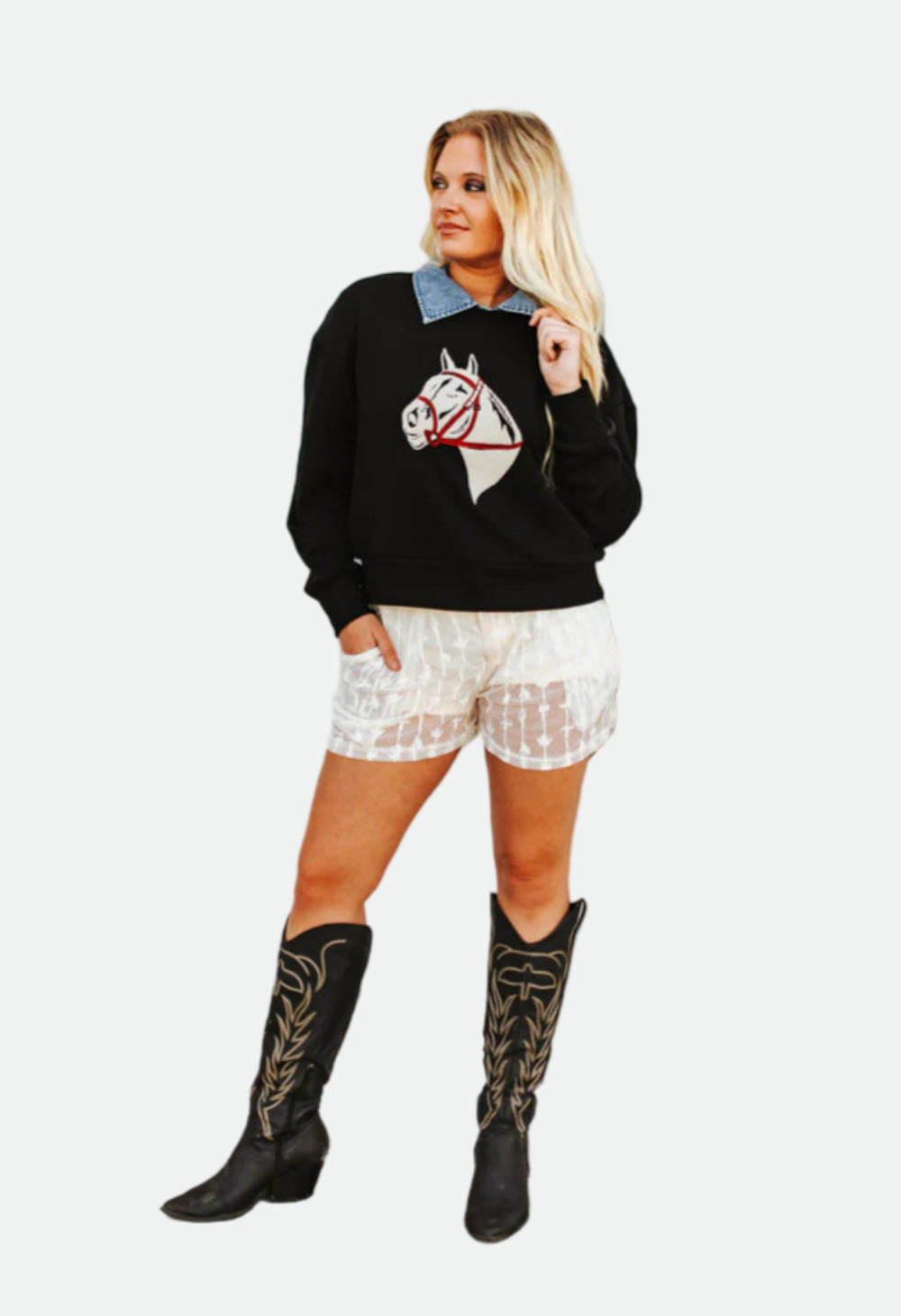 The Fort Worth Nights Midnight top brings Western edge with a modern twist. Featuring bold details and a sleek midnight hue, it’s the perfect piece to dress up or wear casual—made for cowgirls who shine after dark.