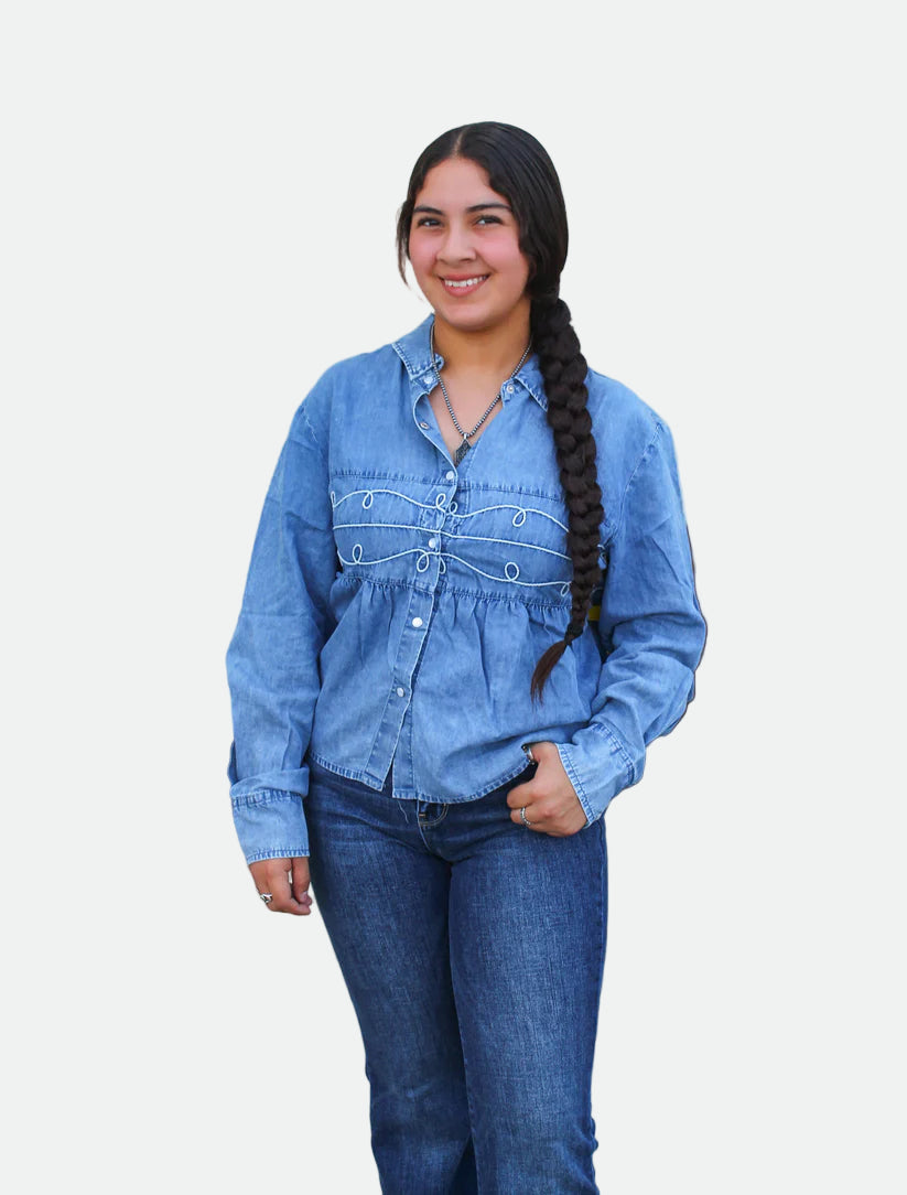 The LOOPTY LOU L/S *MIDNIGHT by 2 Fly Co is more than just a button-down shirt for women. It embodies a blend of Western flair, a touch of the unusual, and a sprinkle of everything else. Each design is originally hand-drawn, ensuring a unique touch to your wardrobe. With its all-inclusive range from XS to 3X, it's a piece that transcends trends and becomes a timeless favorite. So why wait? Join the 2 Fly Co family and stay fly with this distinctive shirt!