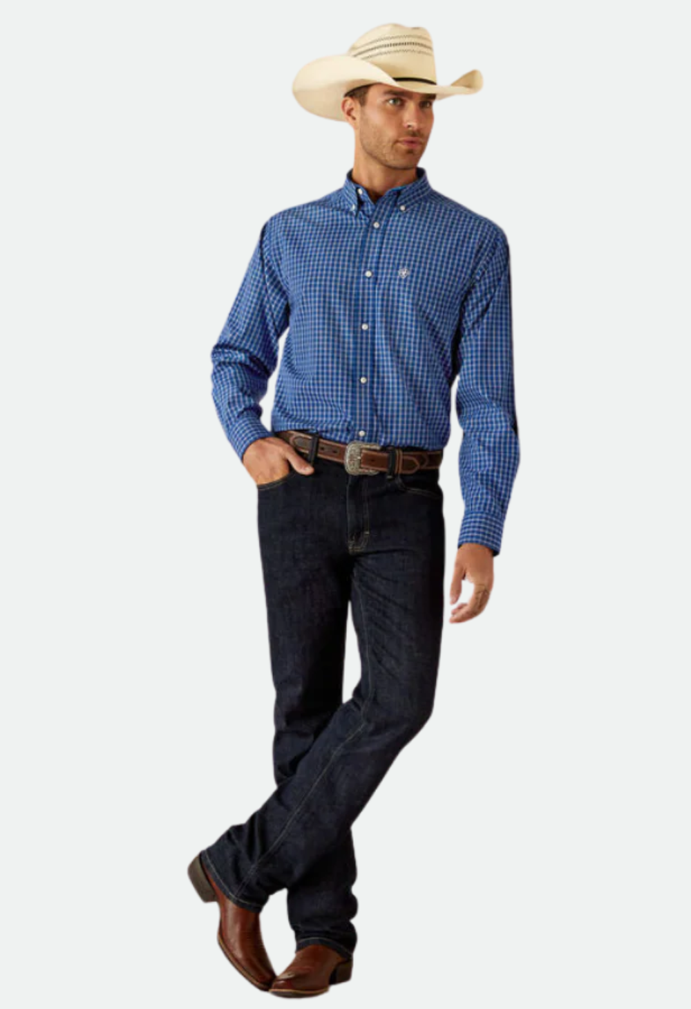 Embrace your inner cowboy with the Ariat Men's Wrinkle Free Blair Classic Navy Shirt, a fusion of bold style, western charm, and unparalleled quality.