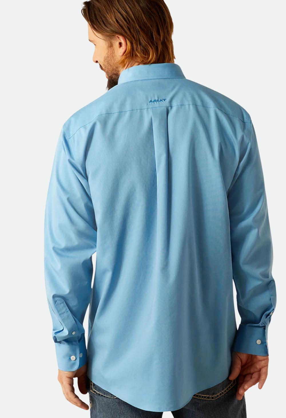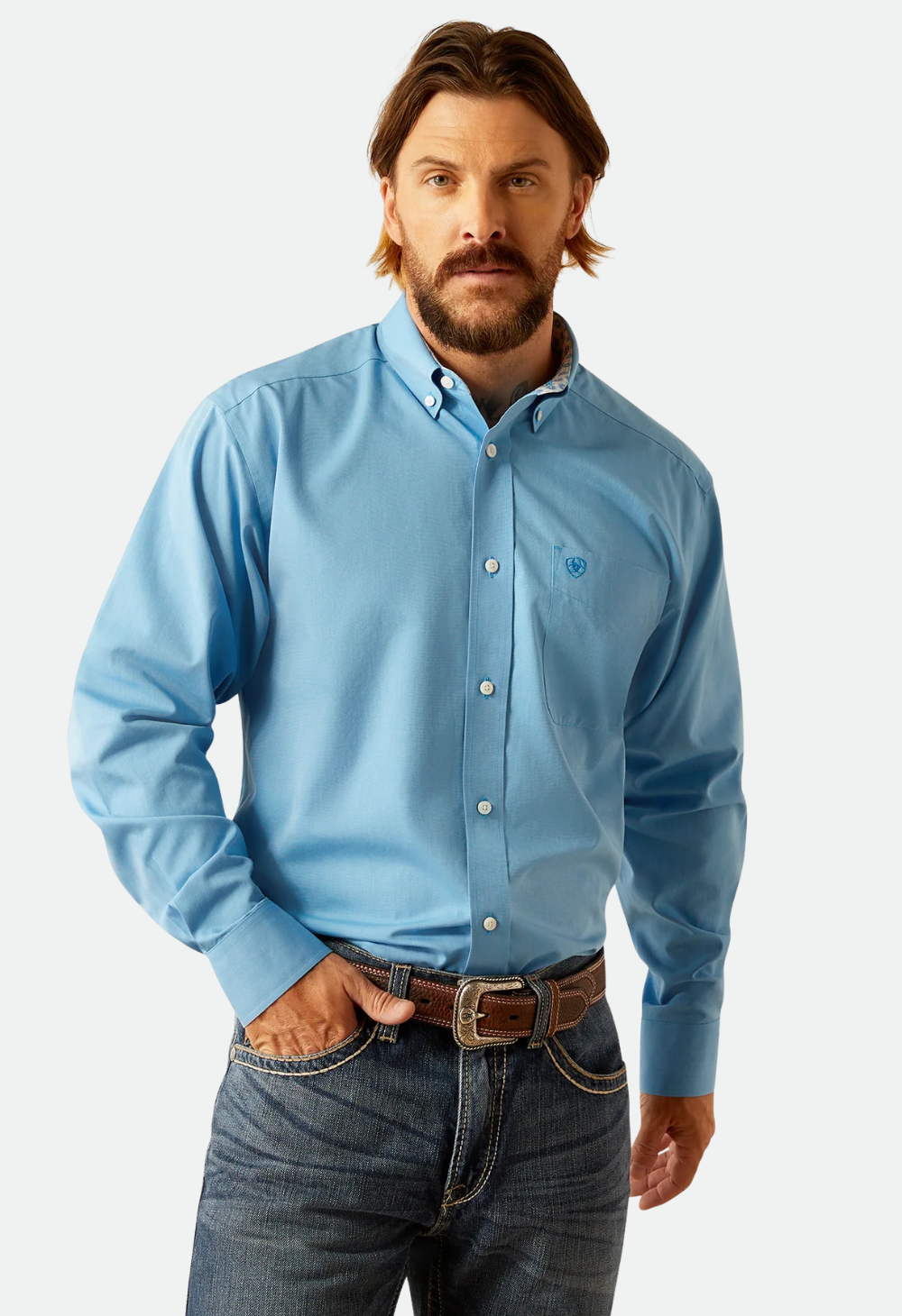 Ariat Mens Blue Wrinkle Free Solid Classic Fit Shirt