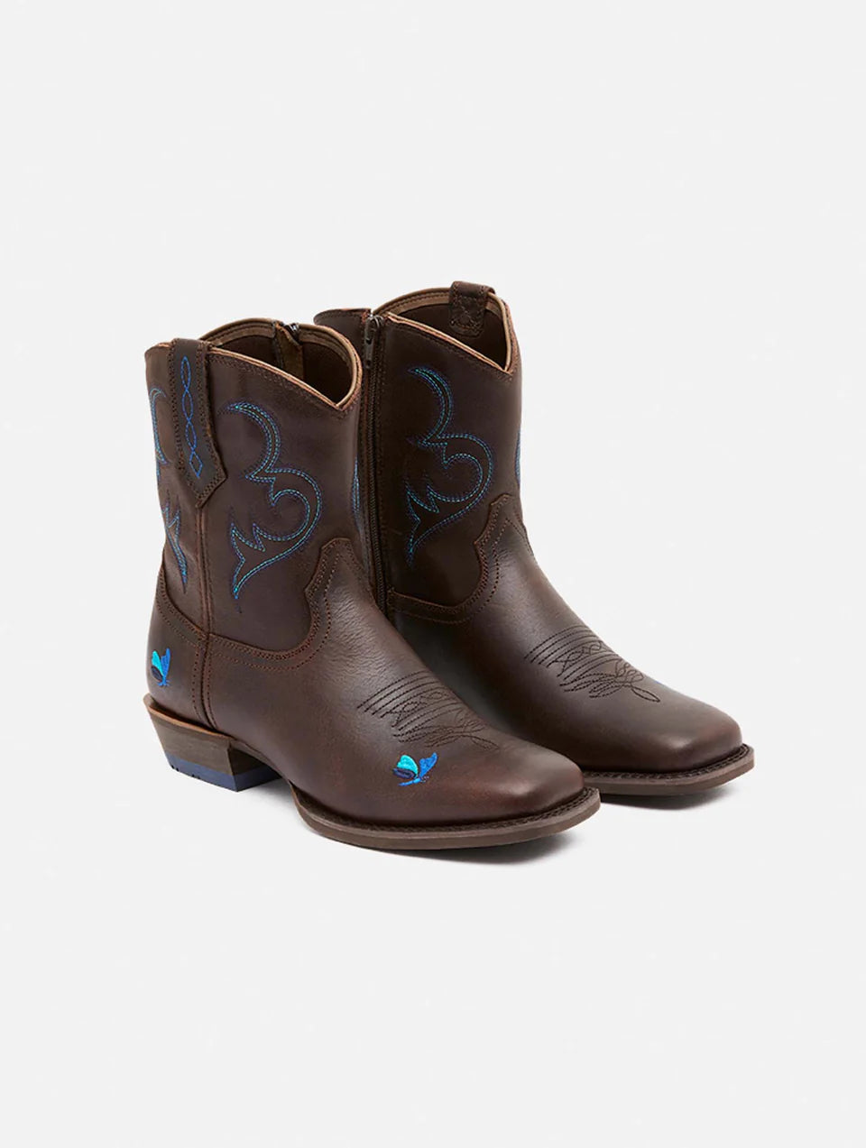The classic square toe design of the Dolly Ladies Short boot features a Cuban heel and side zip for easy wear. The iconic Dolly’s Dream colours and iconic butterfly logo are meticulously stitched on the leather upper. A rubber sole finishes off this special boot.