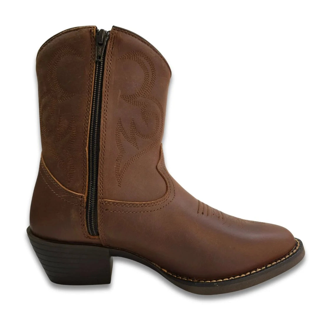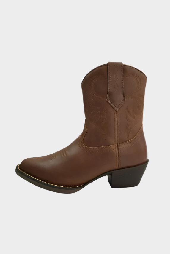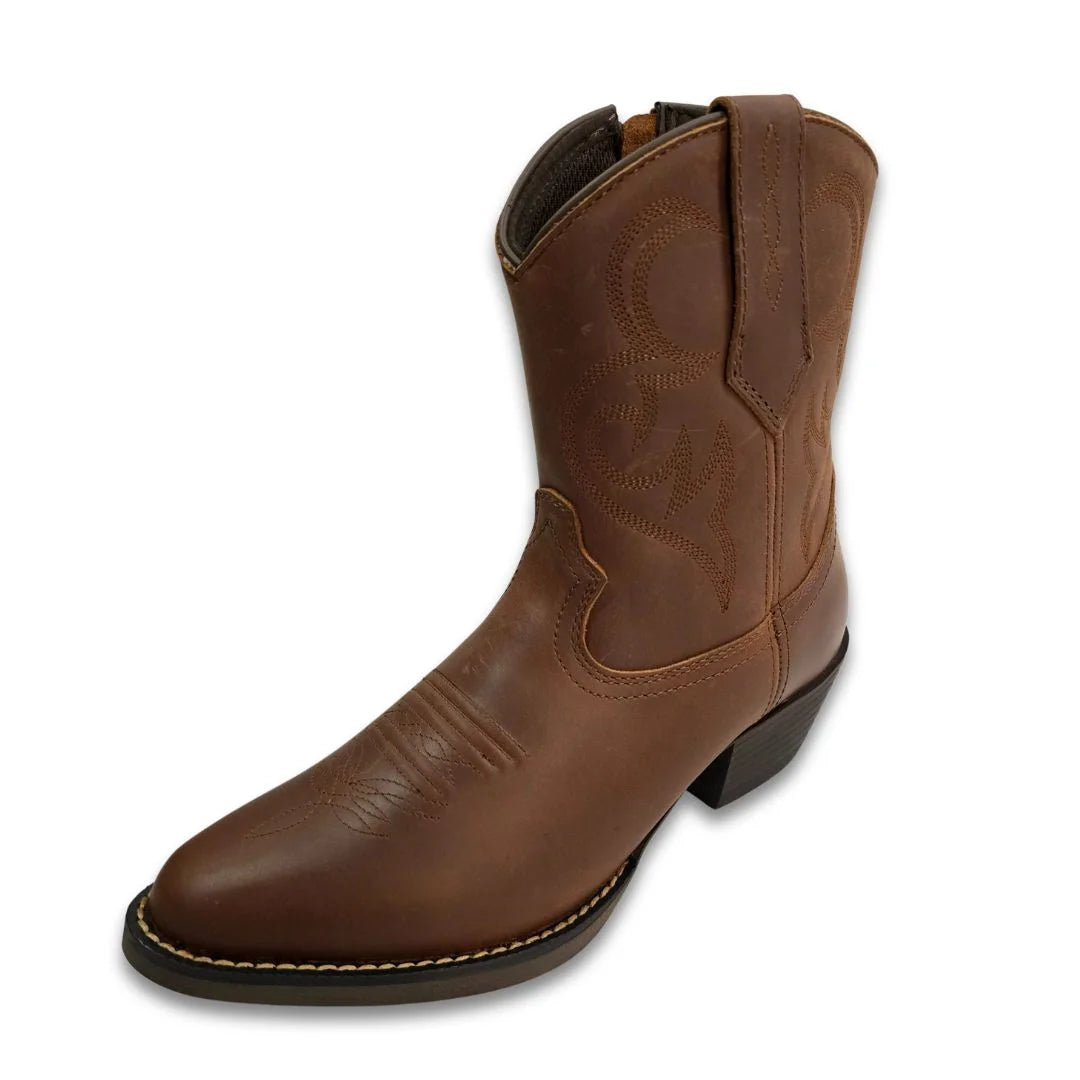 Baxter Leather Ankle Cowboy Boots in Red Brown.