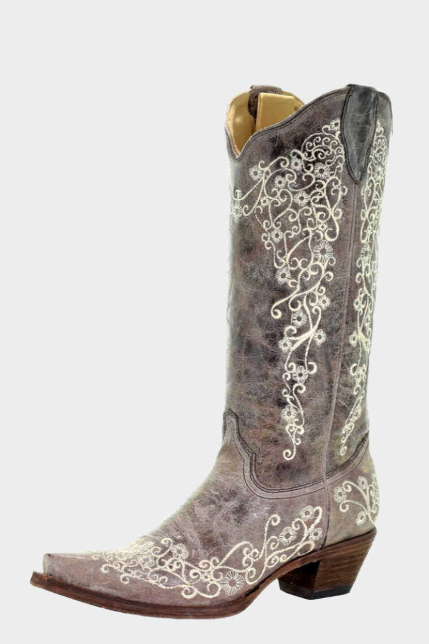 CORRAL BOOTS LADIES BONE FLORAL EMBROIDERY CRATER BROWN