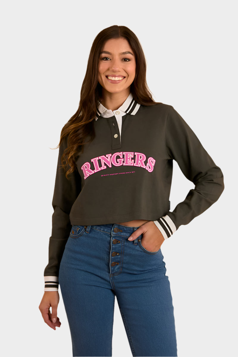 Ringers Western Womens Grace Cropped Rugby Jersey - Charcoal