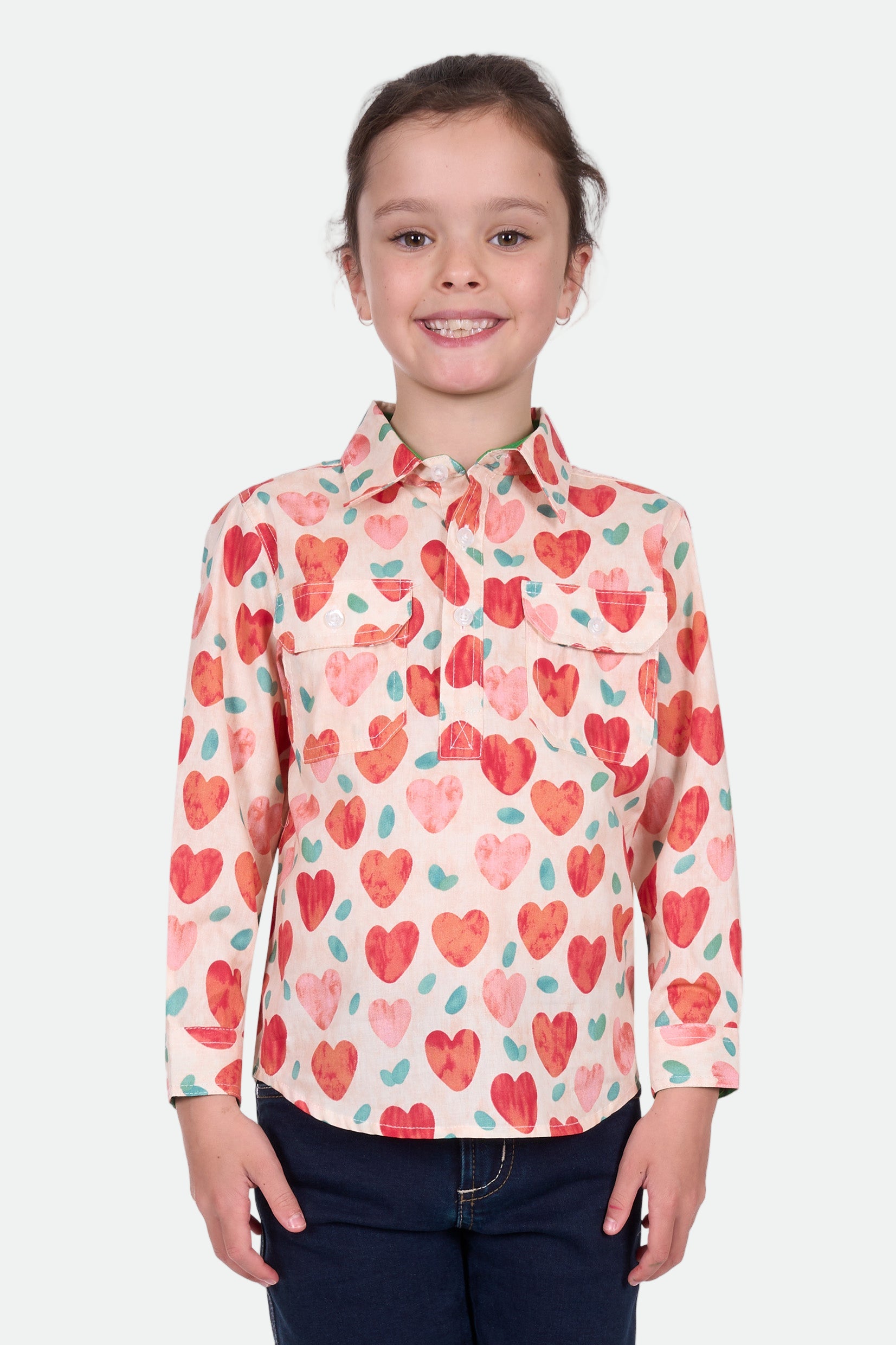 The Hard Slog Kid's Mira 1/2 Plkt LS Shirt in Multi features a fun, colorful design with a practical half button placket. Made from durable, breathable fabric, it’s perfect for everyday adventures, outdoor activities, or work alongside the grown-ups.