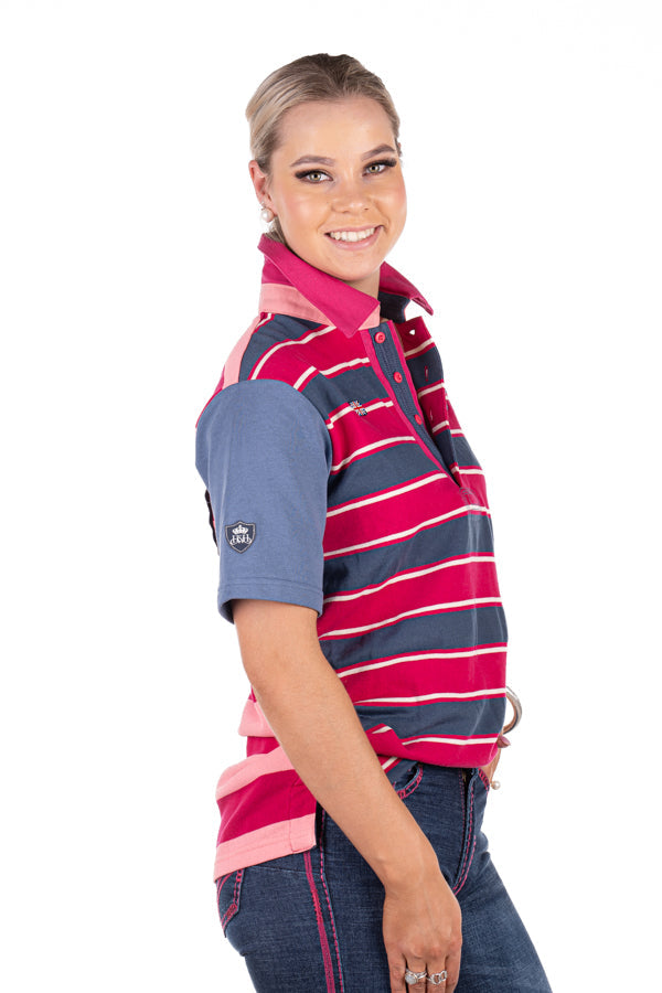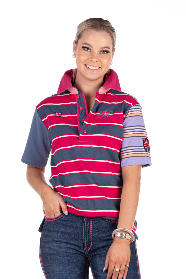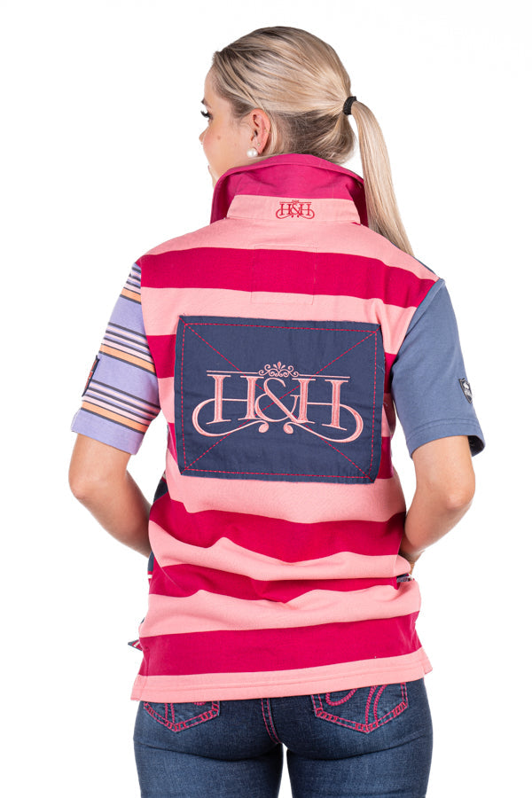 HITCHLEY & HARROW RUGBY COLLECTION - RC01-7 RASPBERRY/WHITE/NAVY RUGBY FIT POLO
