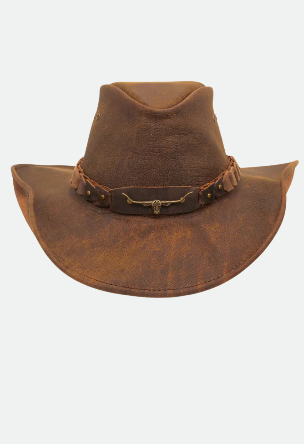 Rugged, stylish, and versatile, the Brumby Shapeable Leather Hat features a durable leather construction with a moldable brim for a custom look. Perfect for sun protection, outdoor adventures, and classic Aussie style.