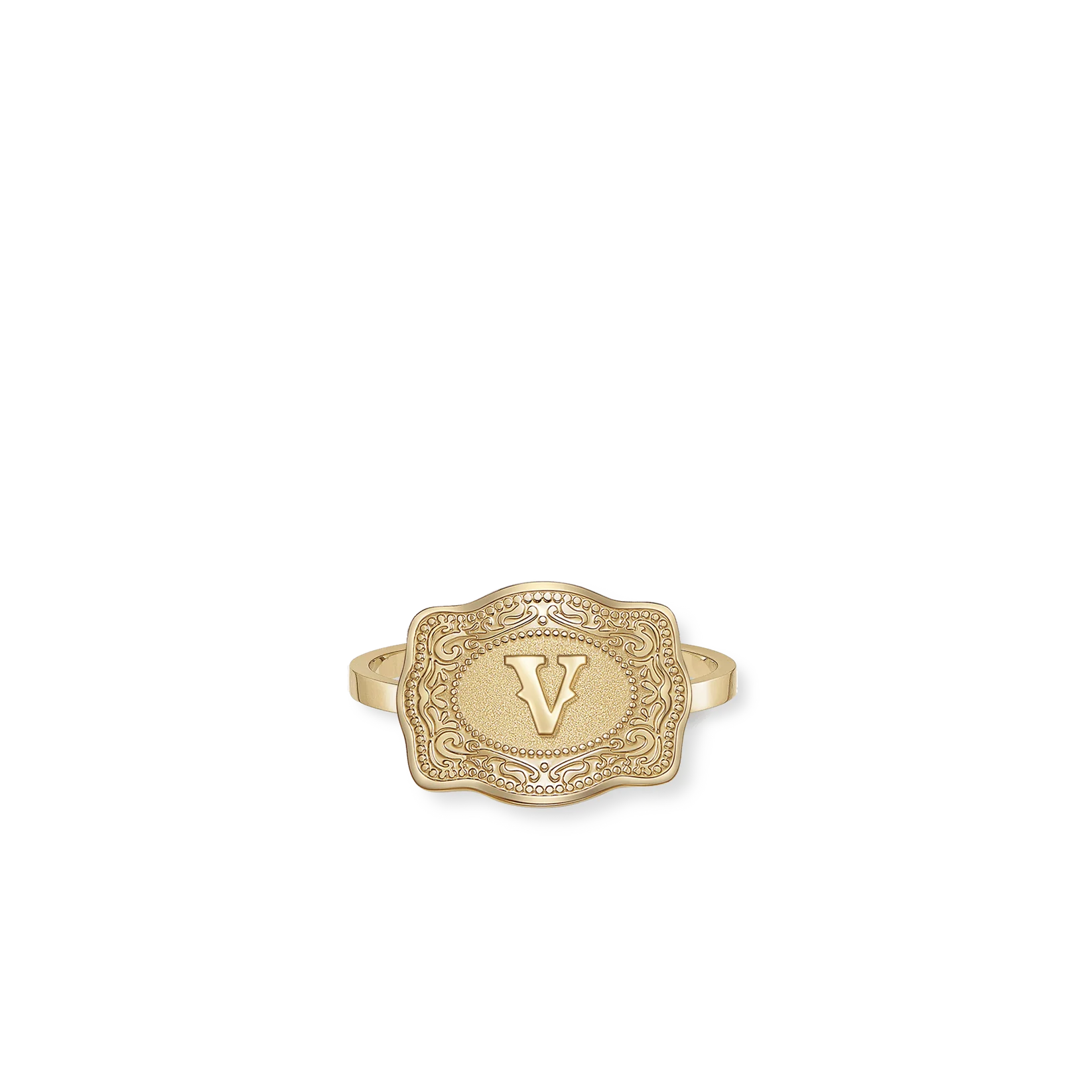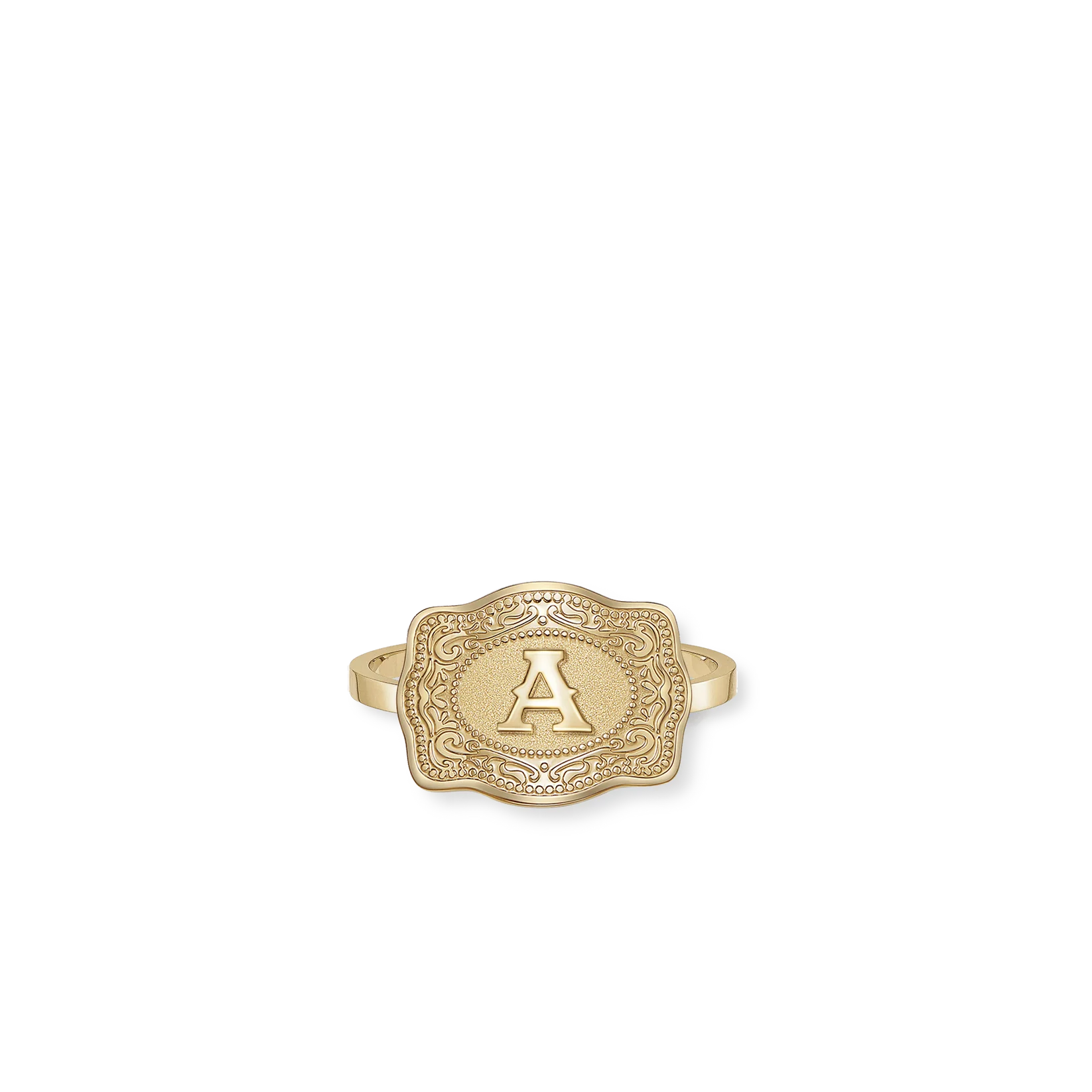 SpurWest Mini Belt Buckle Ring (Initial) U.S. Ring size 6-10 below - half sizes available - Gold