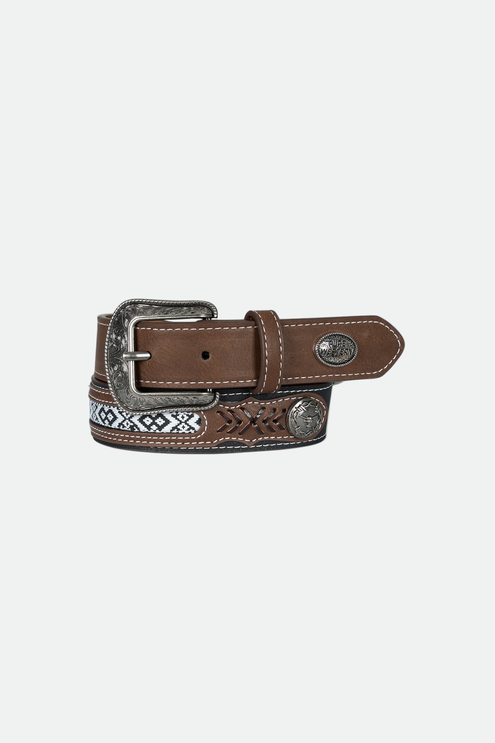 The Pure Western Kid's Clayton Belt in Tan/Black showcases a classic two-tone design with western-inspired details—ideal for everyday wear with a rugged touch.