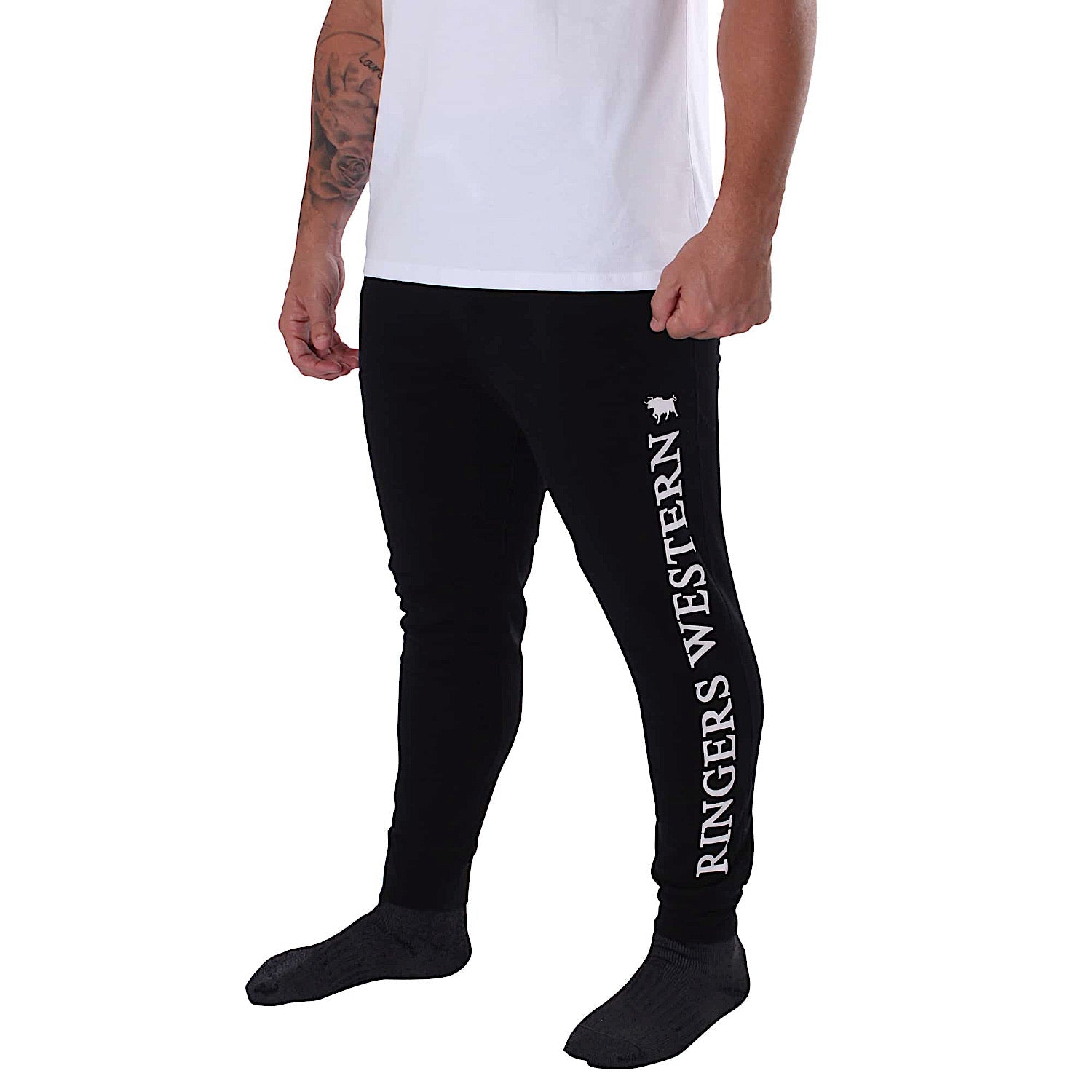 Ringers Western Texas Men's Trackpants - Black with White Print