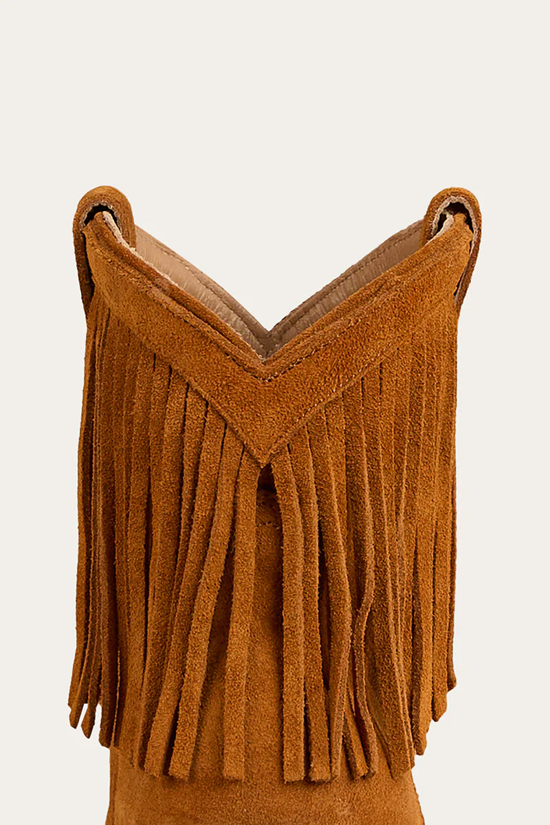 The Brittany womens boots are a round toe style, meticulously hand crafted in Mexico from premium Cowhide Suede leather. The Brittany boots feature a high 9cm stacked heel as well as eye catching, western fringe - these boots are destined to dance the night away!