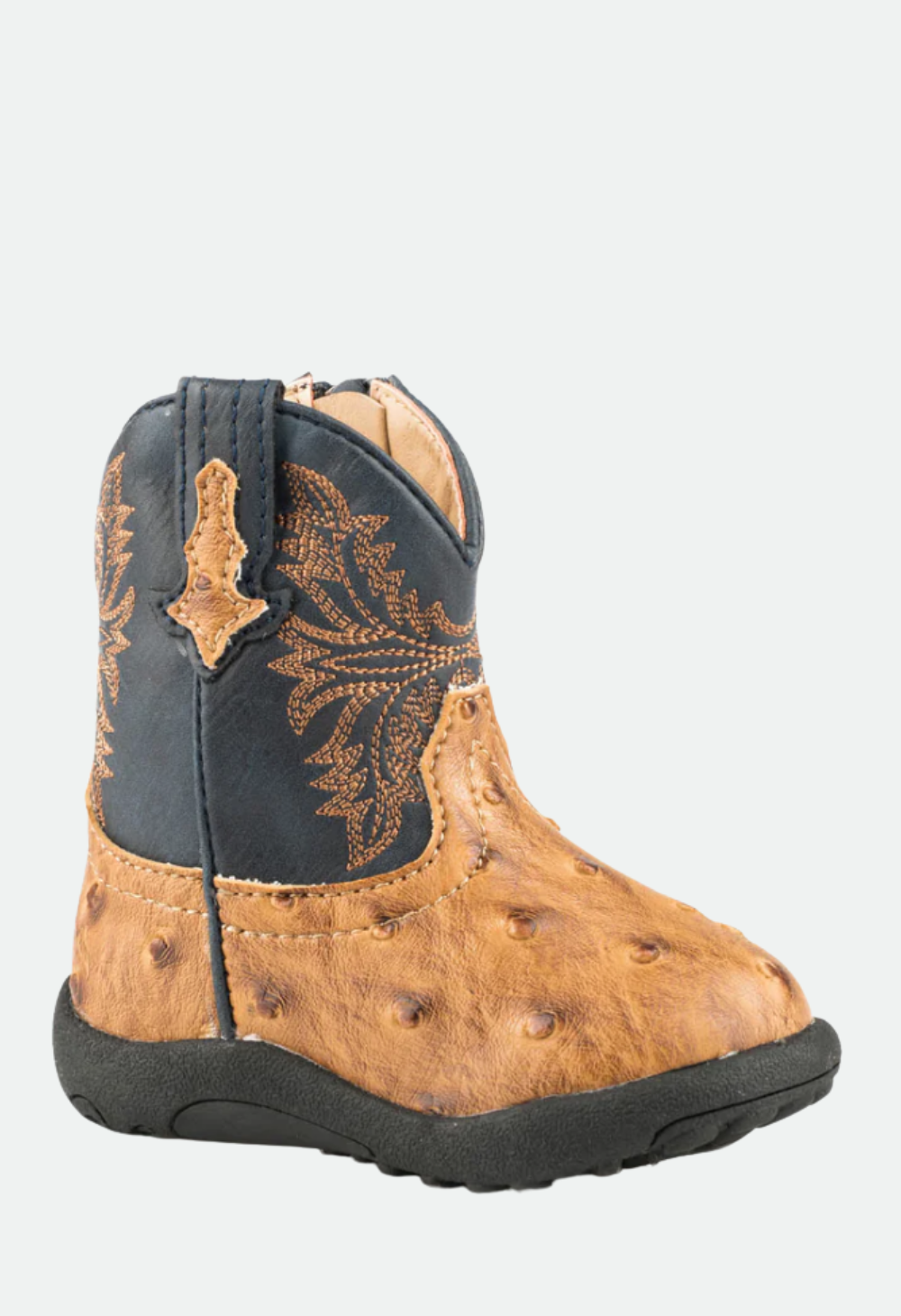 - Tan Faux Embossed Ostrich Vamp / Navy Shaft