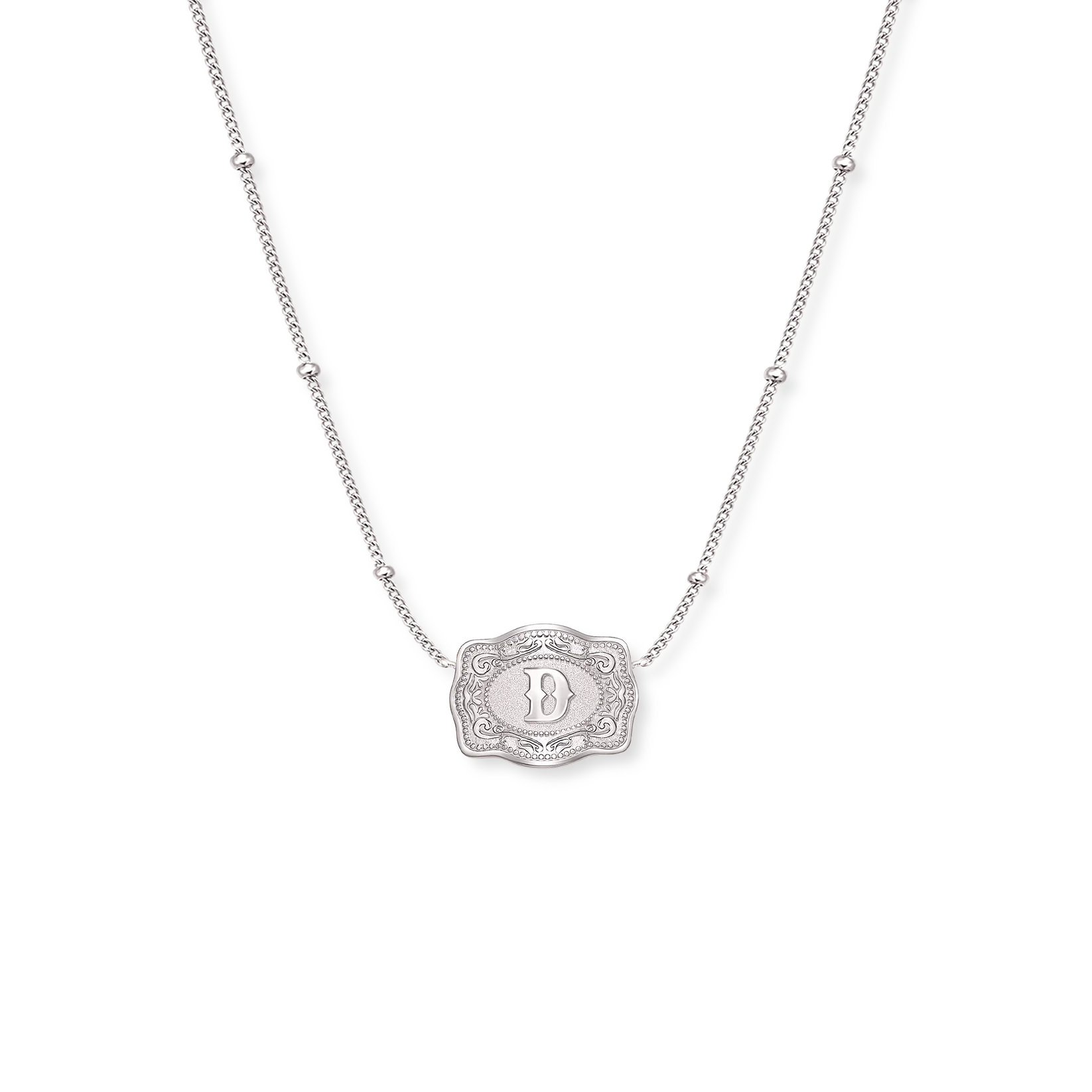 SpurWest Ultra Mini Belt Buckle Necklace (Initial) - Silver