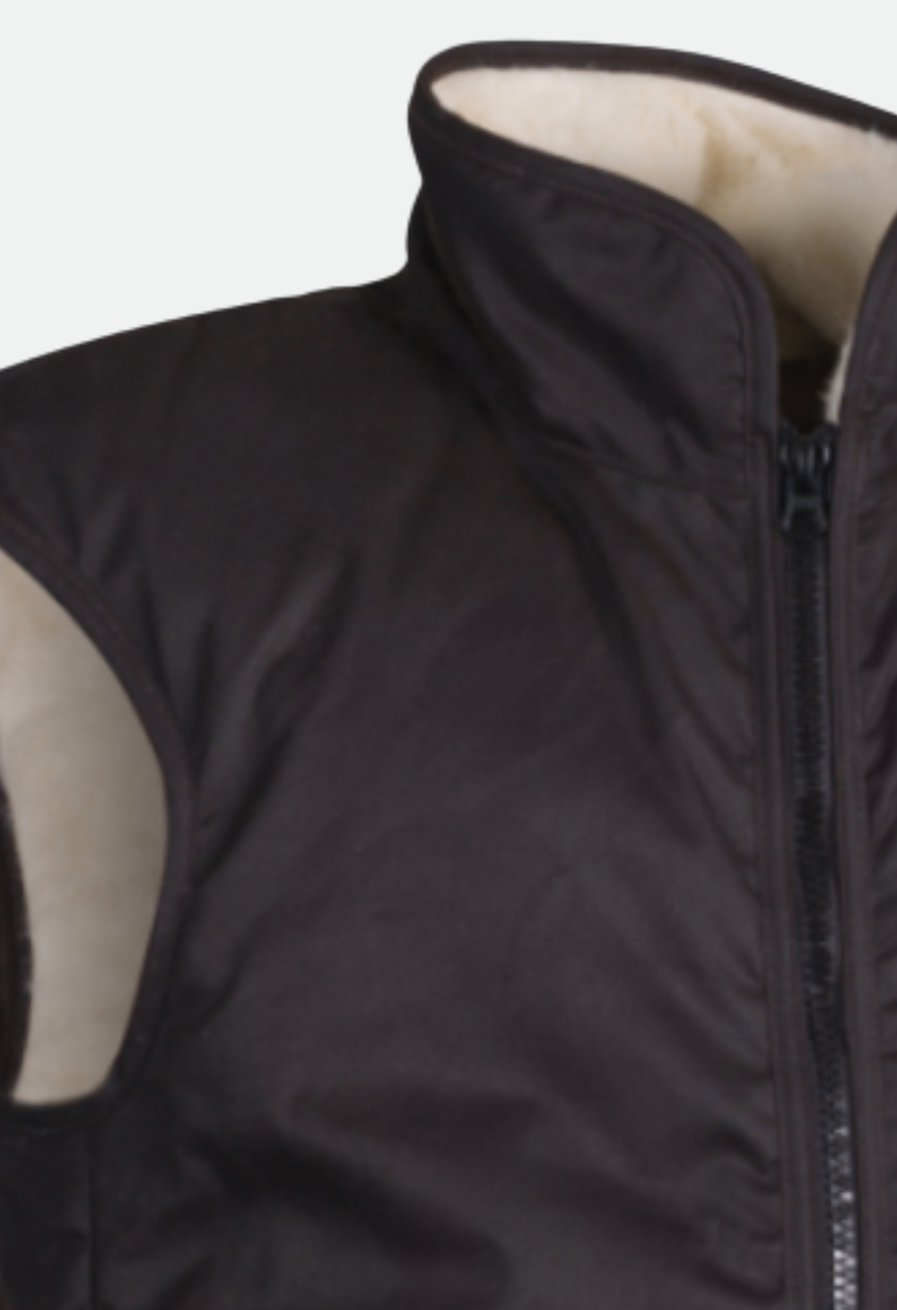 Styx Mill Shearling Vest in brown oilskin wax; a tough, durable material synonymous with performance and quality. Features include a quality full front zip and external chest zip pocket, with a super-soft white wool liner and a drop-tail design to keep your back protected in colder weather. The perfect blend of rugged functionality and style, keeping you warm and comfortable when you’re out there facing the elements.