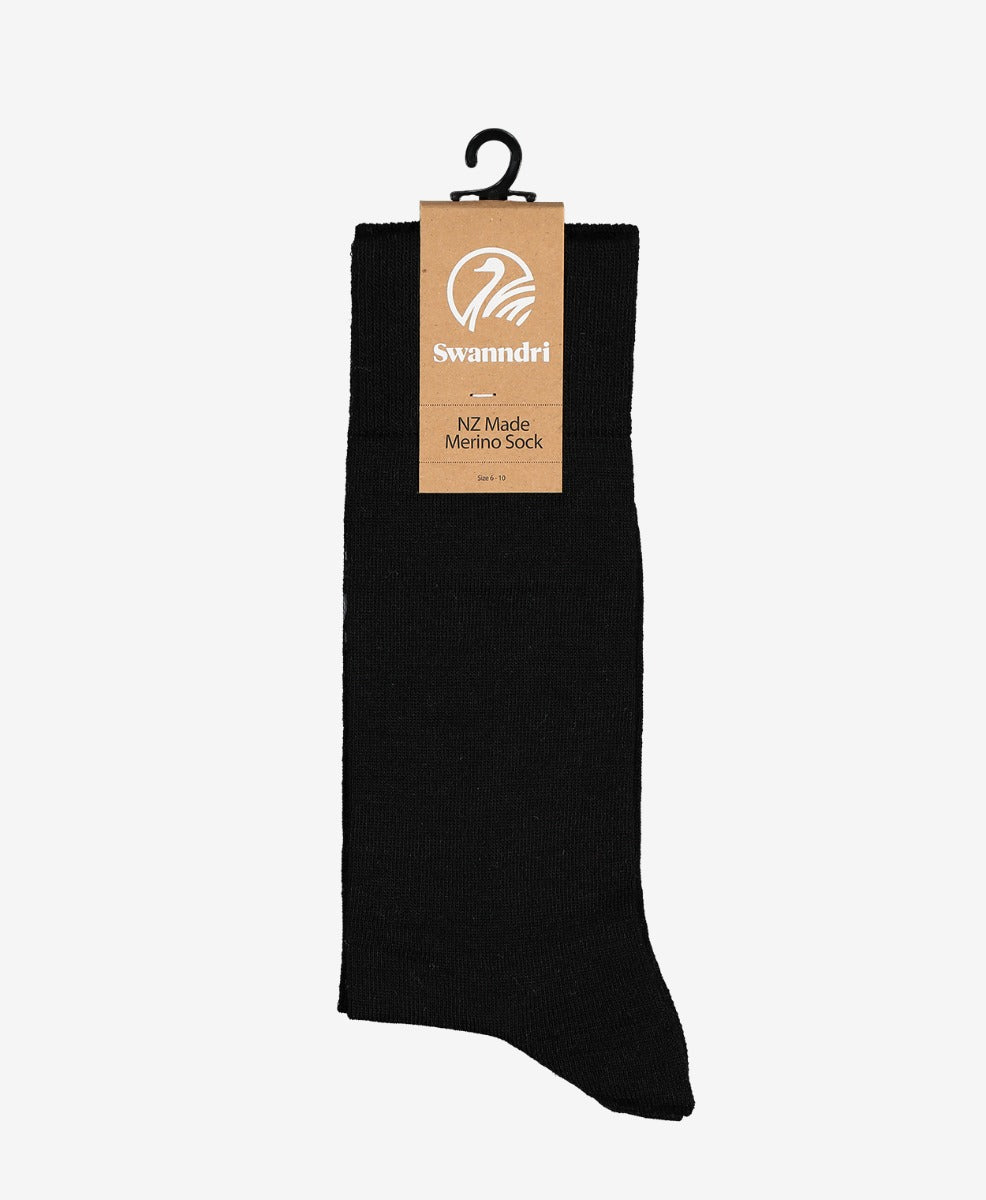 Swanndri's classic merino rich dress socks are blended with elastane for comfort and stretch, and feature a jacquard Swanndri logo to the toe.