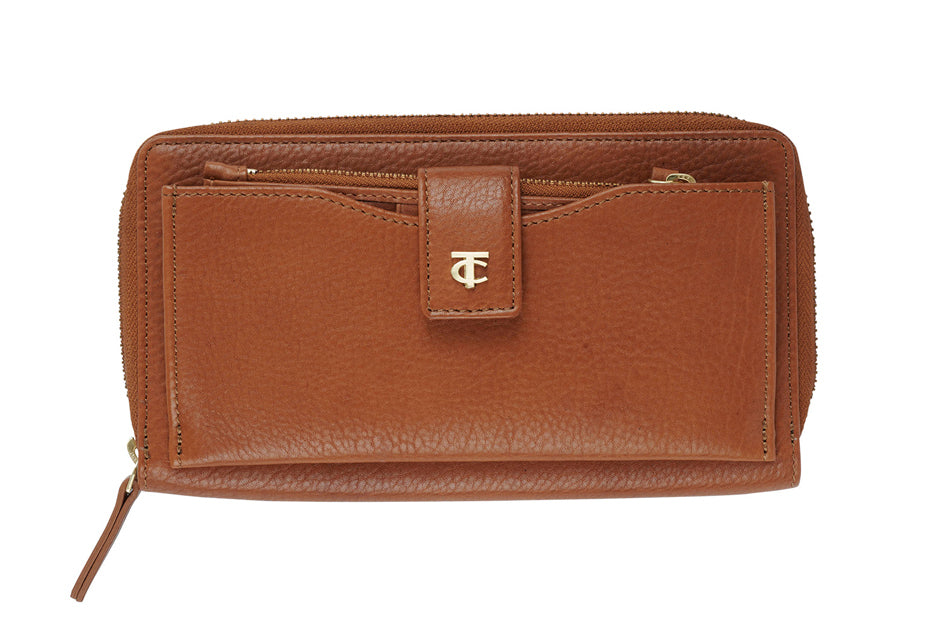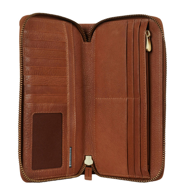 Zip around closure, removable card and coin wallet, front pocket with tab closure 14 x card slots and 1 x ID slots, 2 x note pocket, internal zip pocket, logo metal badge, RFID PROTECT - Technology protects your credit cards, from fraud and identity theft