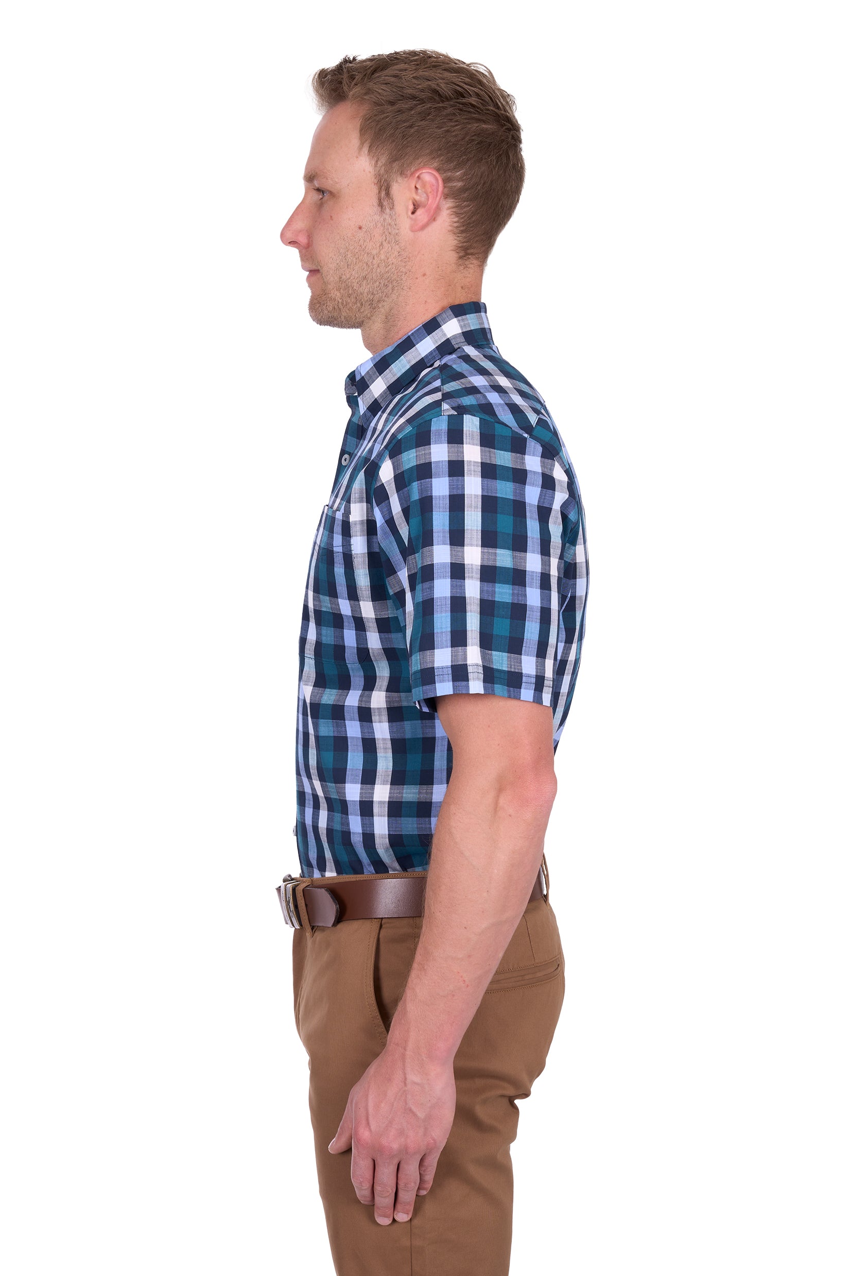Smart, simple, and built for everyday wear, the John 1 Pocket Short Sleeve Shirt by Thomas Cook offers a classic look with modern comfort. Featuring a navy and blue check pattern, this shirt is made from lightweight, breathable cotton and designed with a single chest pocket for a timeless, relaxed style.