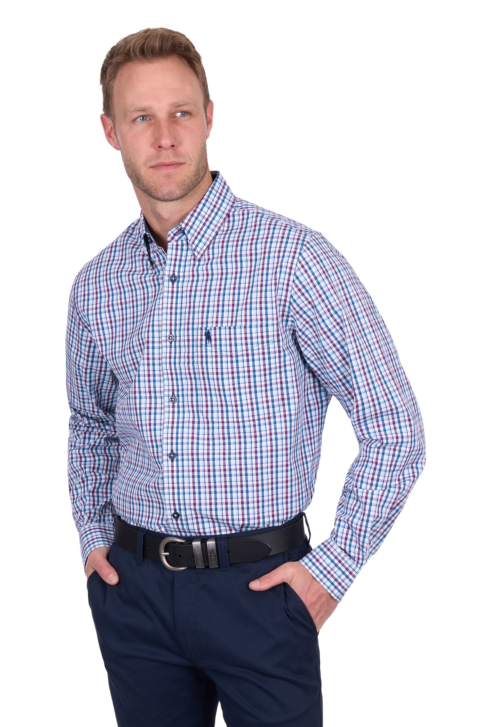 Stay effortlessly stylish with the Thomas Cook Men's Joseph 1Pkt Long Sleeve Shirt in Navy/Blue. Featuring a classic check pattern, single chest pocket, and a comfortable regular fit, it's perfect for both casual and smart occasions.