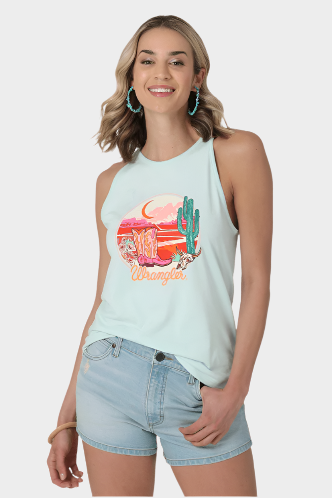 WOMEN'S WRANGLER COWGIRL BOOTS SUNSET GODDESS TANK IN BLUE OPAL