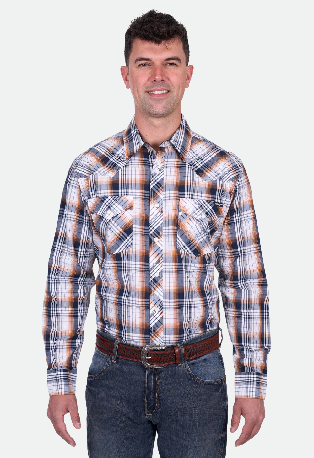 Wrangler MENS TOBY LS SHIRT - Navy/Orange
