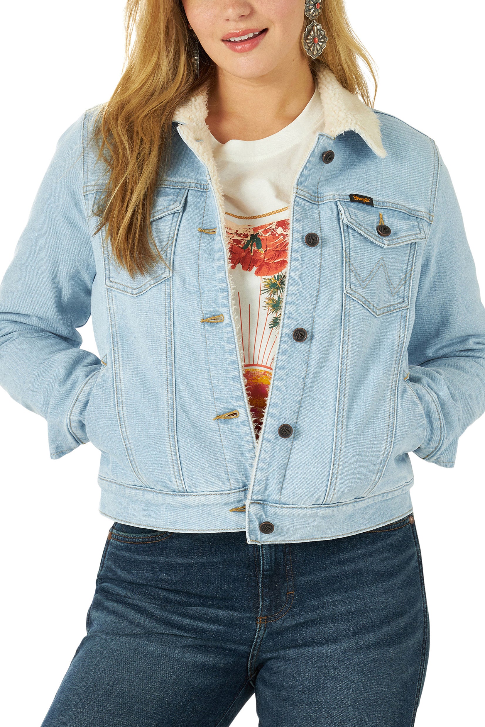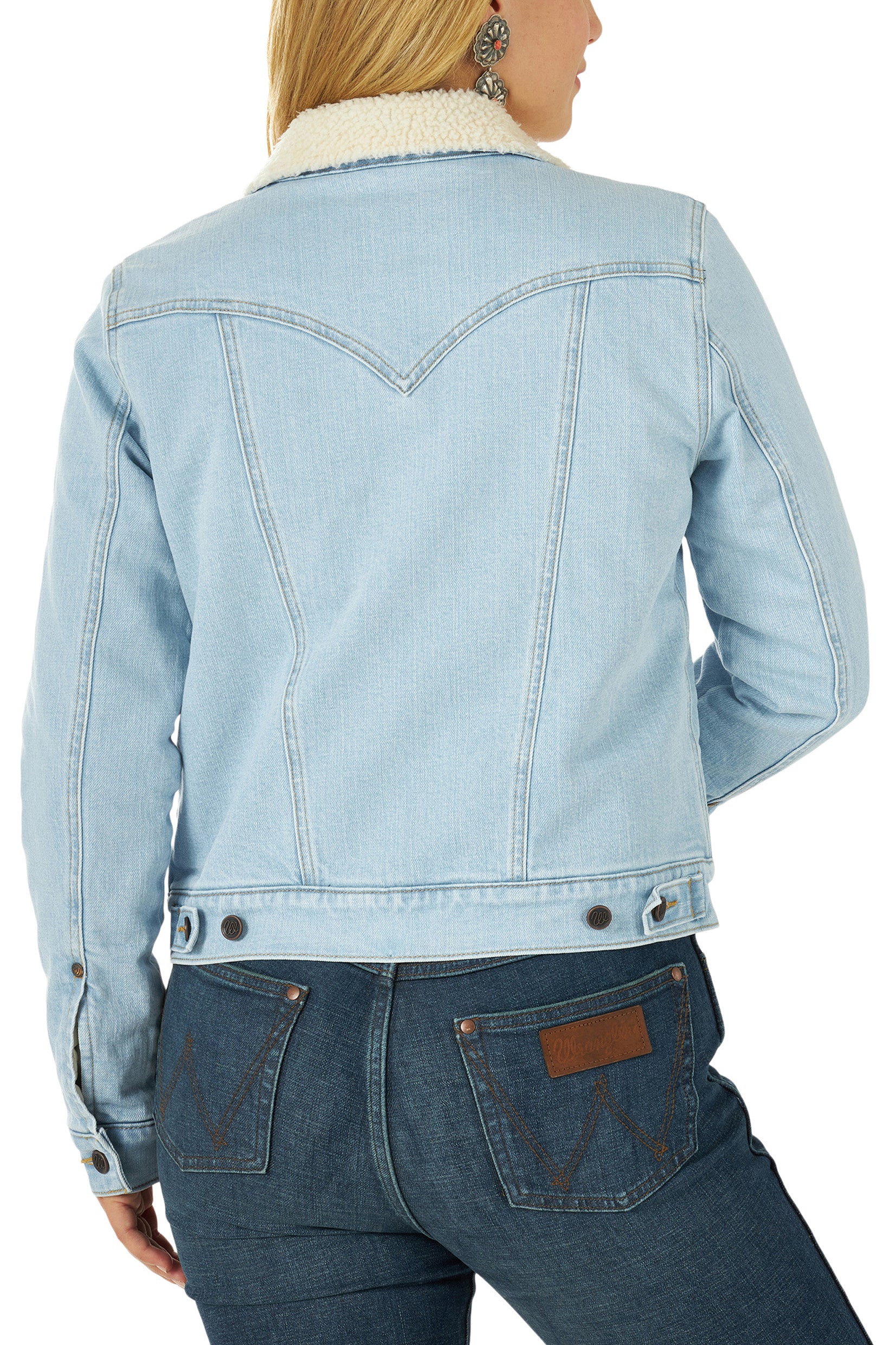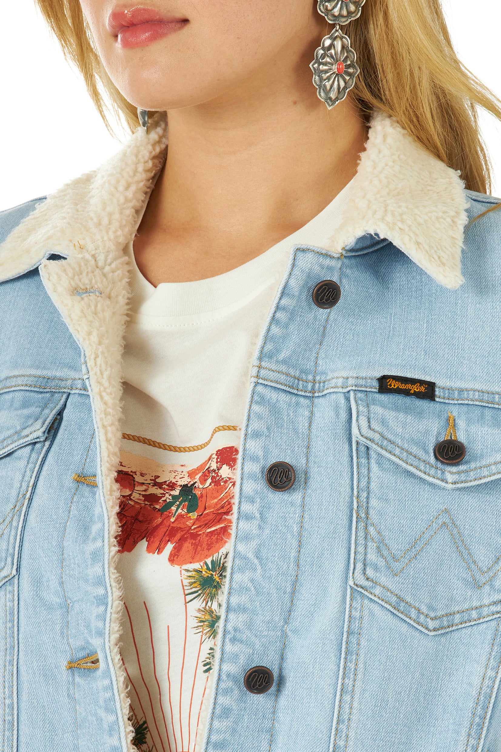 Wrangler Women's Retro Sherpa Lined Western Denim Jacket - Bleached Denim