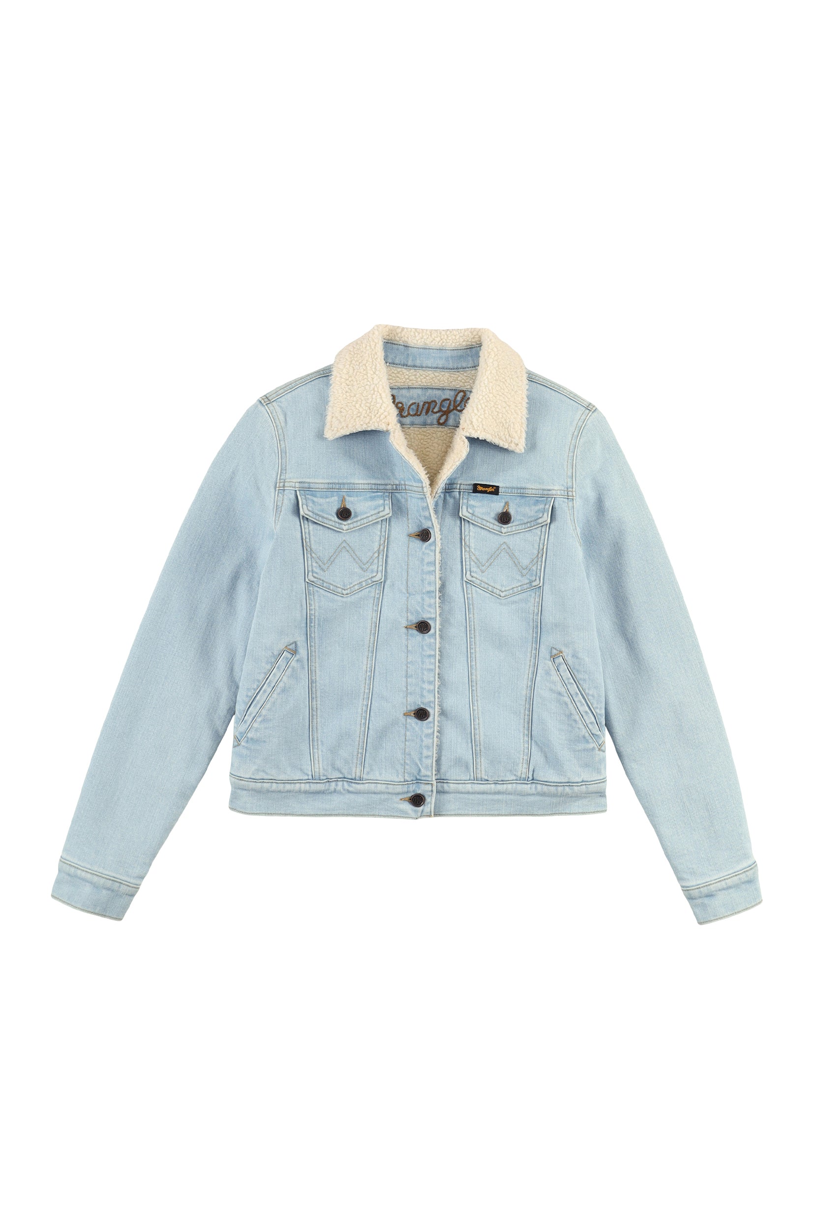 Just what every cowgirl needs in her cold-weather wardrobe. The Wrangler Retro® women's sherpa-lined jacket is a classic silhouette made for Western outfits that keep you cozy. Made from a denim exterior, the timeless silhouette is enhanced by a warm sherpa lining on the inside for an insulated, cozy feel you can always count on. The denim trucker jacket features authentic Western details, including a Western back yoke and our iconic 'W' stitching on the chest spade pockets. Layer it over a graphic t-shirt and add your best Wrangler jeans and cowgirl boots for an undeniably Western winter look.