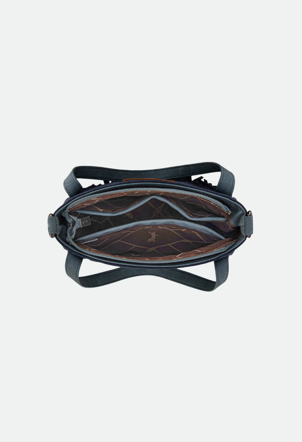 This eye-catching bag blends rugged Western appeal with soft, stylish details. Crafted with two-tone material and genuine fringe accents, it offers a boho flair that complements denim, boots, and any laid-back look. The roomy interior fits your essentials, while a secure zip closure keeps everything safe. With a comfortable strap for shoulder or crossbody wear, this bag is perfect for daily adventures or country concerts.