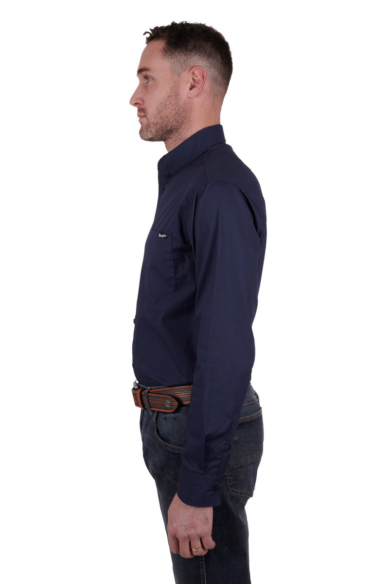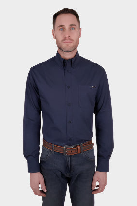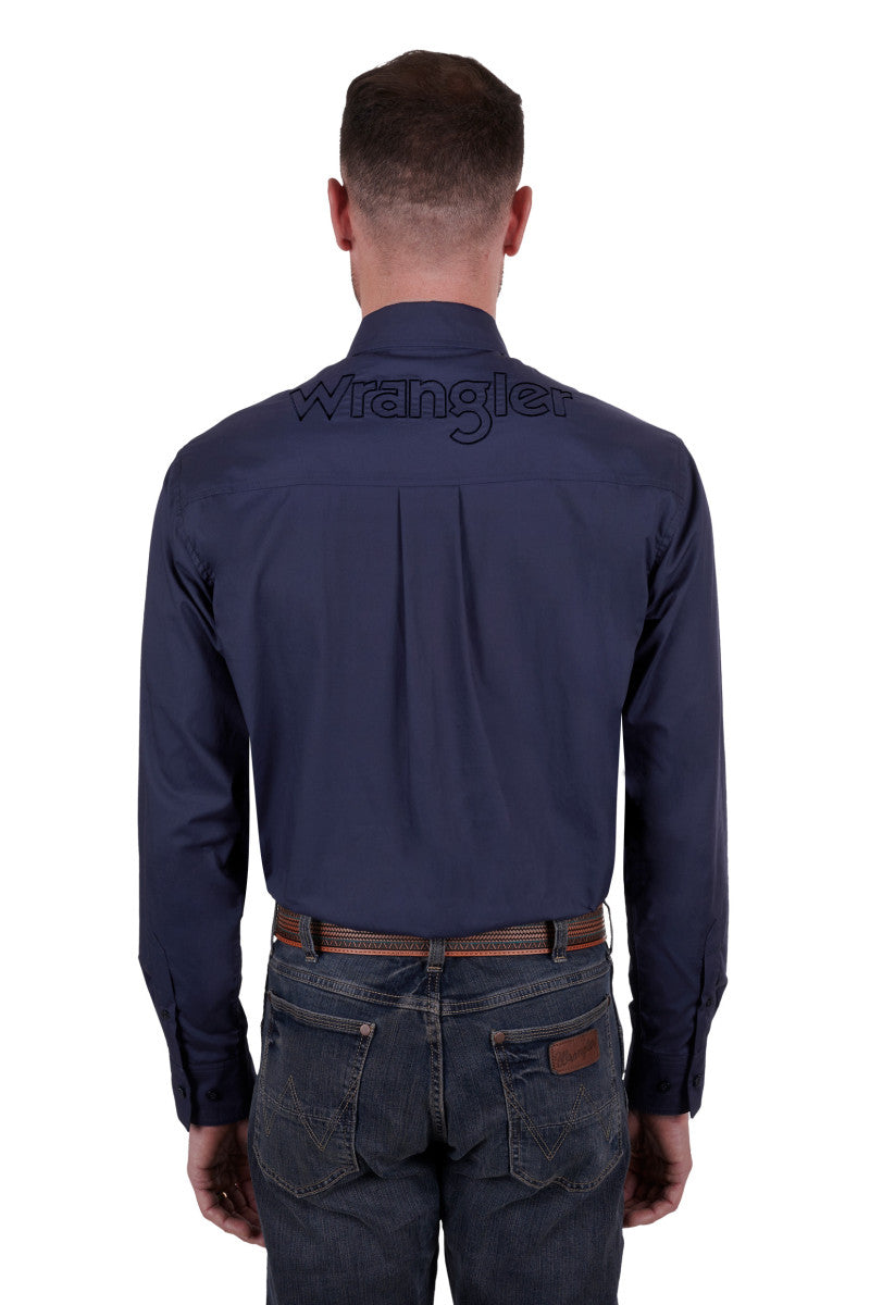 WRANGLER MENS NIKO LOGO LONG SLEEVE SHIRT (NAVY) - SALE